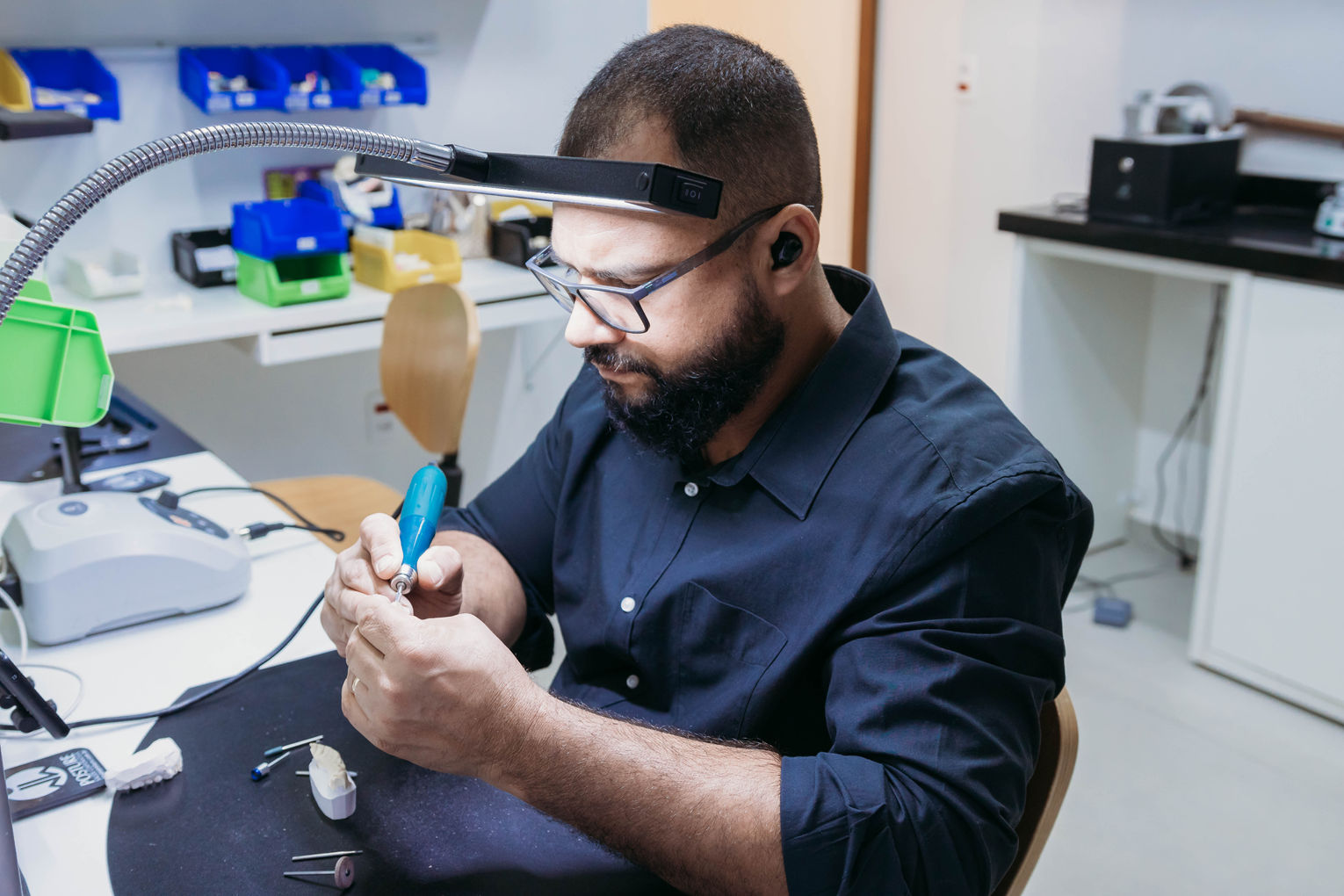 Cada sorriso tem uma necessidade única. Nosso laboratório oferece soluções personalizadas em próteses dentárias, unindo tecnologia de ponta, precisão e excelência estética. Trabalhamos com diversos materiais e técnicas — como zircônia, dissilicato (E.max), metalocerâmica e protocolos sobre implantes — sempre focados em devolver função, conforto e estética aos pacientes.